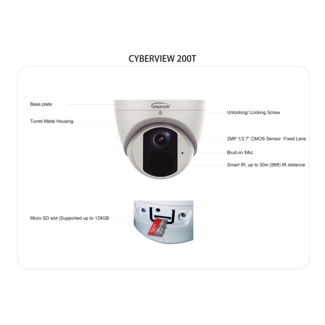 | CyberView 200T | 2 MP Outdoor IR Fixed Turret Camera | 744390952142 | 5.2 x 5.2 x 5.3 Inch | 0.9 lbs | 16 |