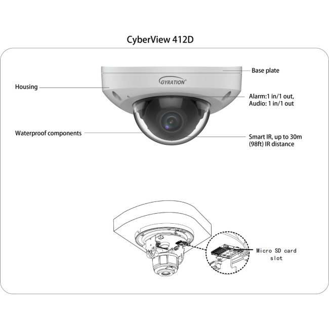 | CyberView 412D | 4 MP Outdoor Intelligent Fixed Dome Camera | 744390952340 | 5.3 x 5.3 x 5.7 Inch | 1.31lbs | 16 |