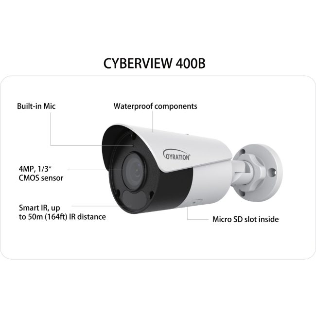 | CyberView 400B | 4 MP Outdoor IR Fixed Bullet Camera | 744390952159 | 5.2 x 5.2 x 5.3 Inch | 1.2 lbs |  20 |