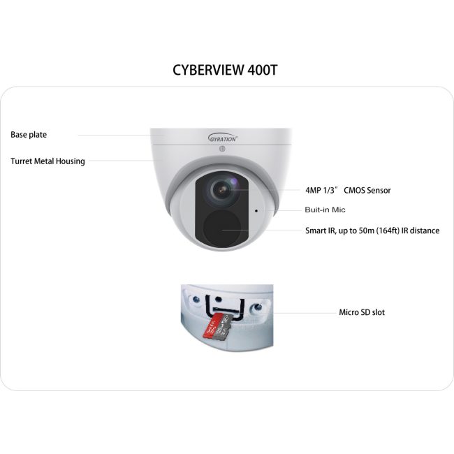 | CyberView 400T | 4 MP Outdoor IR Fixed Turret Camera | 744390952173 | 5.2 x 5.2 x 5.3 Inch | 1.2 lbs |  16 |