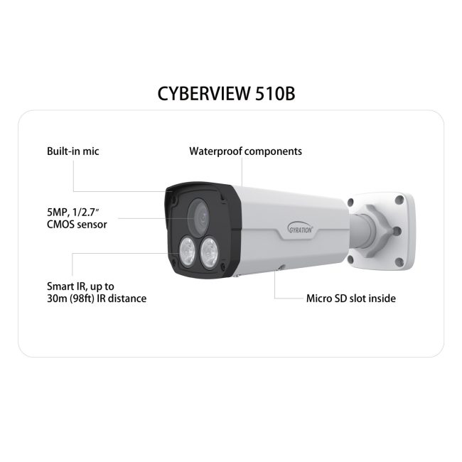 | CyberView 510B | 5 MP Outdoor Intelligent Fixed Bullet Camera | 744390952432 | 11.7 x 5 x 4.9 Inch | 2.5 lbs | 12 |