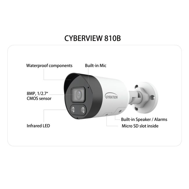 | CyberView 810B | 8 MP Outdoor Intelligent Fixed Bullet Camera | 744390952241 | 8.39 x 4.09 x 4.21 Inch | 1.3 lbs | 20 |
